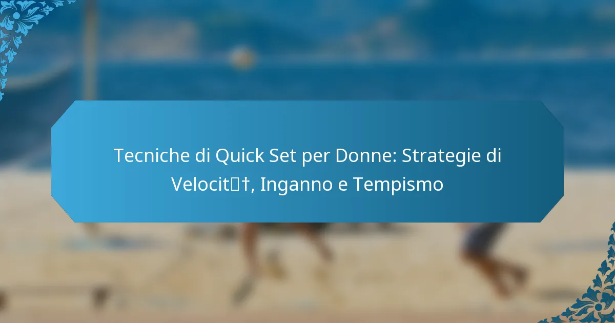 Le tecniche di quick set per donne coinvolgono strategie che sfruttano velocità, deceptione e tempismo per ottenere un vantaggio in varie situazioni. Queste tecniche sono applicabili sia negli sport che nelle interazioni sociali, consentendo risposte e coinvolgimenti efficaci.