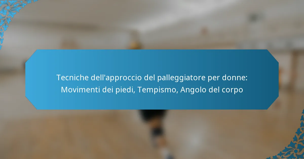 Le tecniche di approccio del palleggiatore per le donne nel volley si concentrano su tre elementi chiave: il lavoro di piedi, il tempismo e l’angolo del corpo. Padroneggiare un corretto lavoro di piedi consente ai palleggiatori di posizionarsi in modo efficace e di adattarsi alla traiettoria della palla, mentre un tempismo preciso garantisce la sincronizzazione con l’attaccante per giocate offensive ottimali. Inoltre, mantenere il corretto angolo del corpo è essenziale per fornire alzate accurate che supportano l’approccio dell’attaccante e migliorano le prestazioni complessive della squadra.